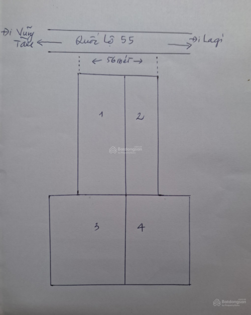 – Mặt tiền QL 55 là 56 mét, ngay đoạn đường thẳng không vướng cầu, dốc. Có điện, nước nhà nước.